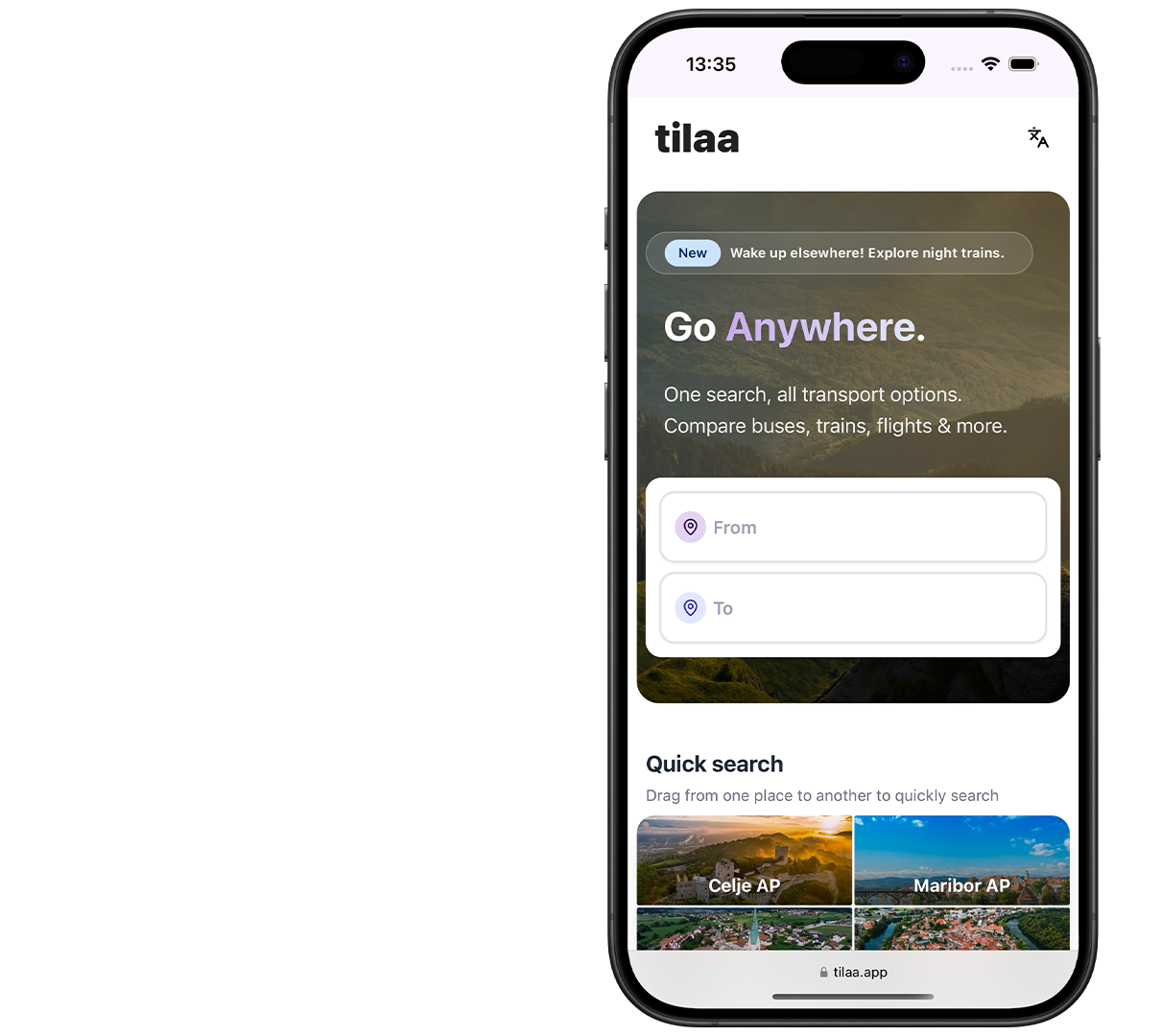 A travel and mobility app that combines hundreds of providers and modes of travel into one simple and elegant search. It was born out of frustration with the Slovenian public transport requiring you to look at 30 different websites to find a bus, as well as during my backpacking trips around Europe. I wanted to be able to enter my location, and see where I CAN go from here. Like Skyscanner "anywhere" but for buses and trains and more.